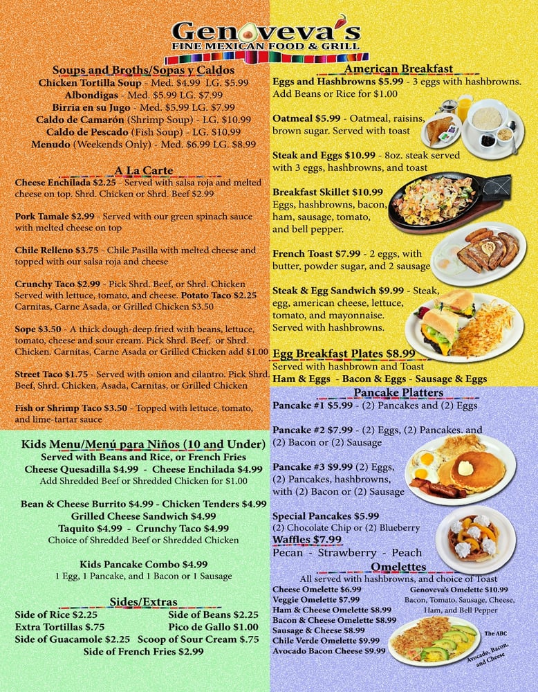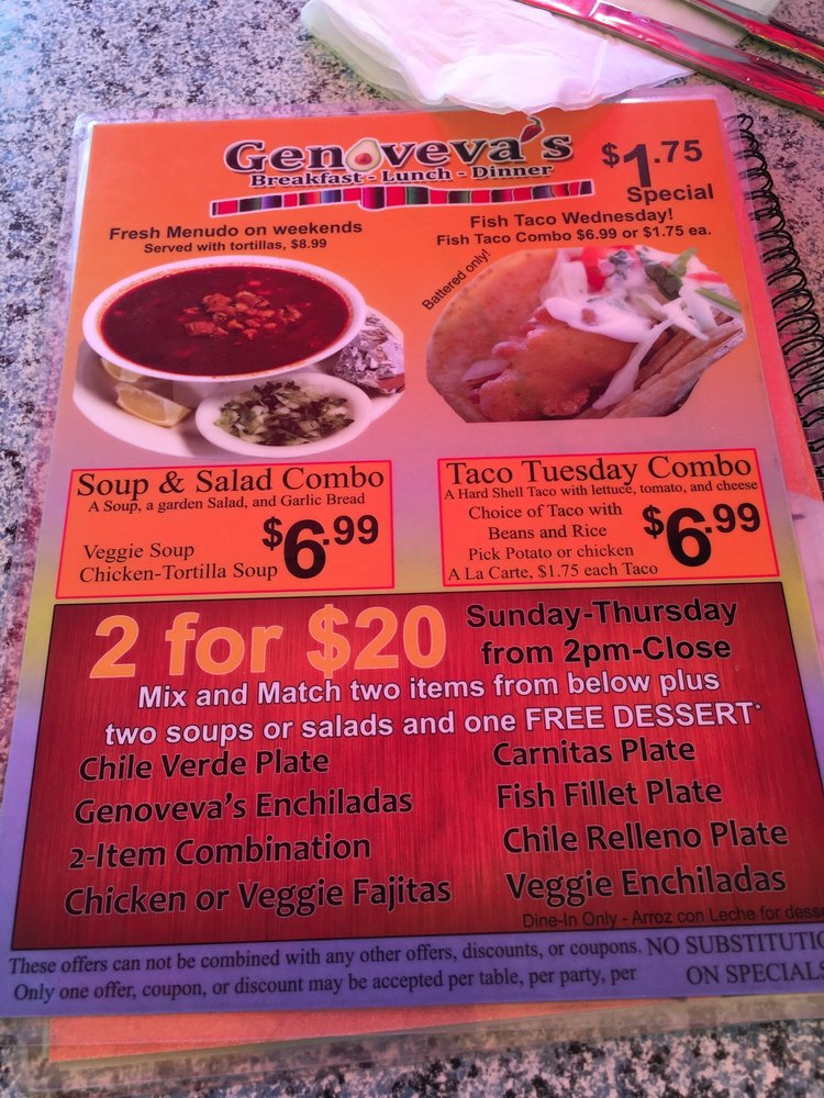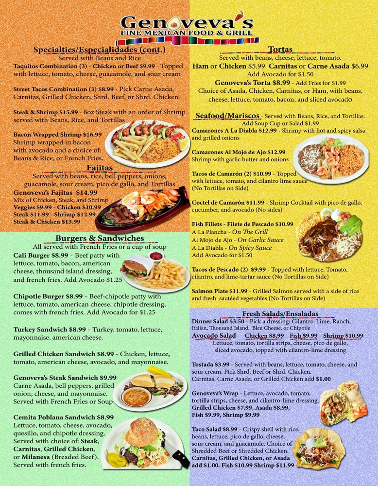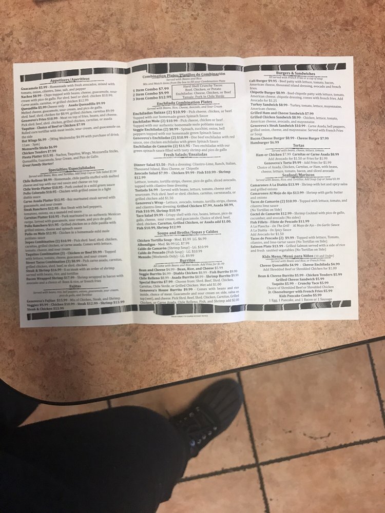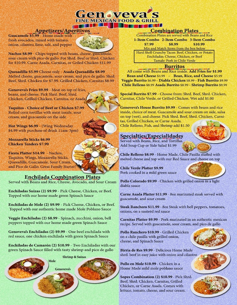 Genoveva's is a versatile dining spot in Upland, CA, offering a wide array of Mexican and American breakfast options, with a casual yet classy atmosphere. The restaurant caters to various dining preferences, including vegetarian and gluten-free options. Guests can enjoy a range of beverages from iced tea to Mexican Coke, alongside hearty breakfast dishes like Steak and Eggs and Huevos Rancheros. The restaurant also offers outdoor seating, catering services, and happy hour specials. Customers have praised the attentive service and tasty food, with highlights being the Chicken Wet Burrito and Chicken Enchiladas. The homemade flavors and Covid19 safety measures make dining at Genoveva's a pleasant experience. Overall, Genoveva's provides a satisfying dining experience with a mix of traditional and contemporary flavors.